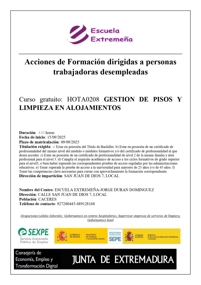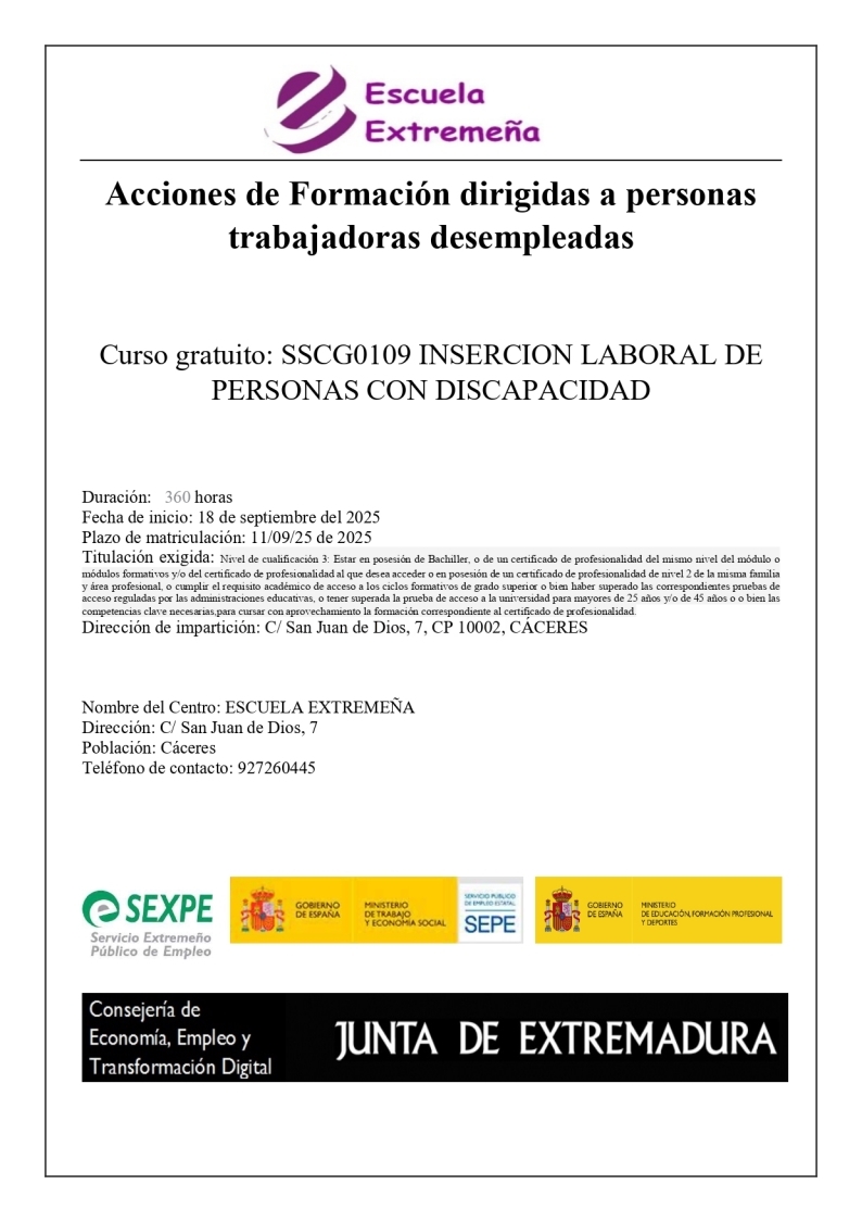 Sociosanitaria - Hostelería - Discapacidad - Servicio a la Comunidad